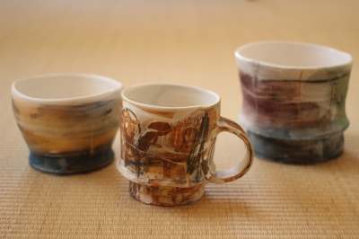 松浦香織さんの絵 & 常設作家のカップ & 金継ぎの会