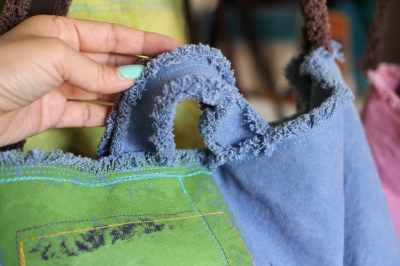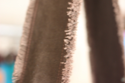丈夫な帆布を太く裁ち、両端をケバケバにしており、