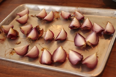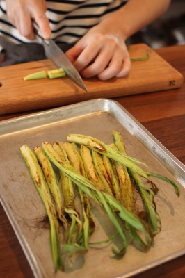 アミューズ:ヤングコーンのグリルとまるごとローストした新玉ねぎ