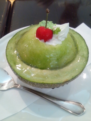 私がカフェに着いたと同時に、メロンのスウィーツ登場。
