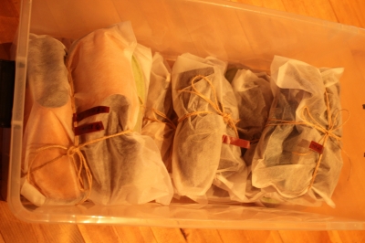 先月ご注文いただいたバブーシュや外羽根靴の8割がたが完成。