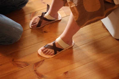 サンダルづくりの過程を、近田さんの美脚とともにお楽しみください。(笑)
