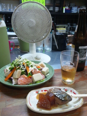 若干暑かったが、エアコンの真下のテーブル席につき、
