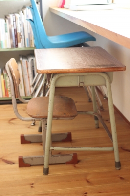 これは小学校に入学したてのチビッ子用の小さい机と椅子。
