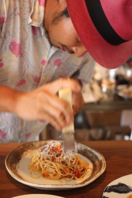 栗田貴士さん自ら、自作の野菜を一番おいしく調理します。