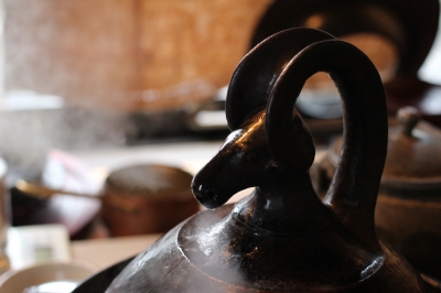 蓋の水牛の鼻からフガーっと蒸気が出ています。(笑)