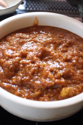 カレーをこの大谷さんの土鍋で温めています。