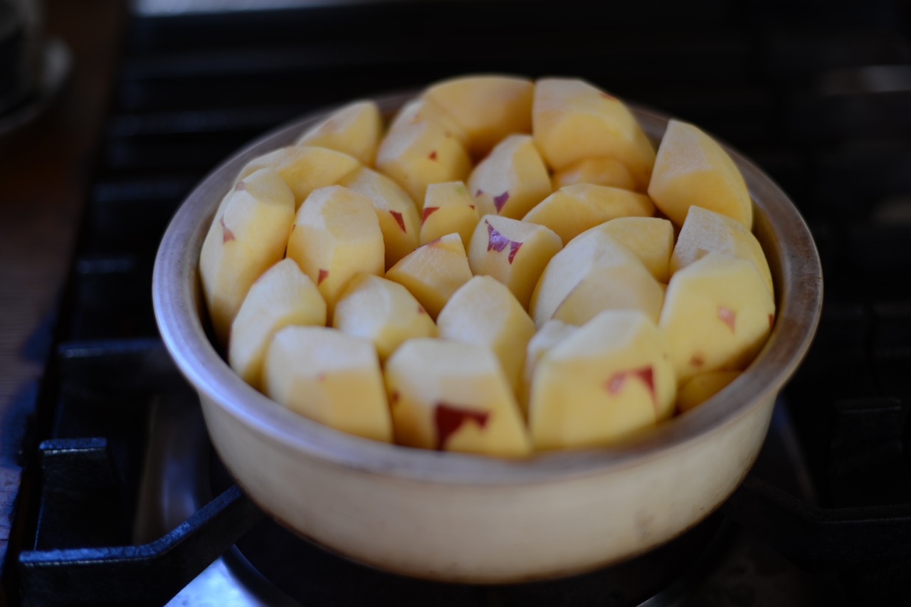 弱火でコトコトと温めた後、火を止めます。