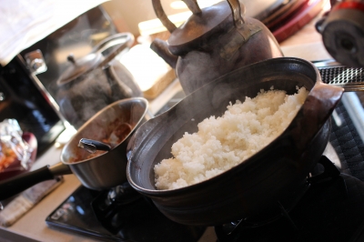 店でカレーランチを出すことになり、大量のごはんを炊くため、自宅から持ってきました。