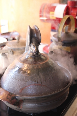 鍋内が沸騰してくると、この蓋の取っ手の水牛の鼻の孔から・・・・・。