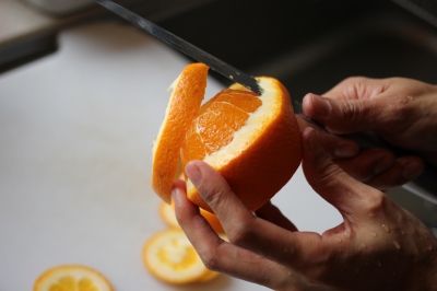 昨日は、オレンジの皮の剥き方を教えてもらいました。
