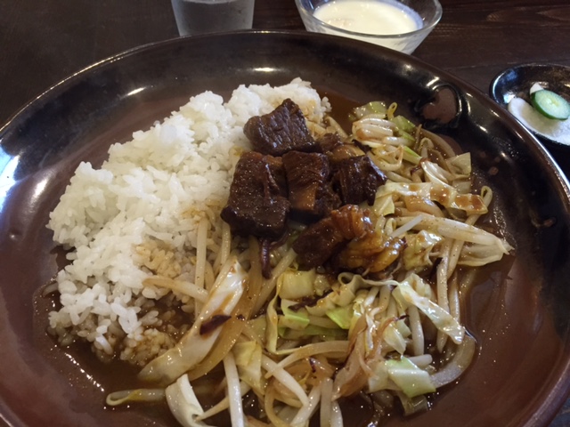 今日食べたのは、定番のビーフカレーに野菜炒めがトッピングされたもの。