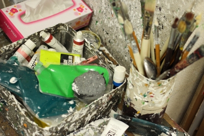 ここから時間をかけてアクリル絵の具をどんどん塗り重ね、