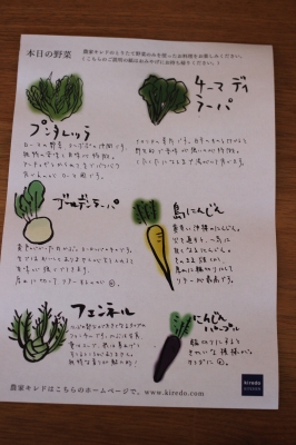 昨日の野菜は珍しいイタリア野菜が主役でした。
