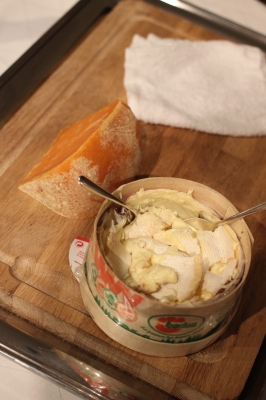 今月のチーズ 24か月熟成のミモレット(左)と期間限定のモンドール(右)