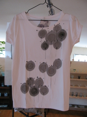 後ろと前に墨で描かれたひとつひとつ柄違いのTシャツ。