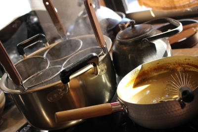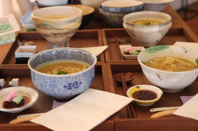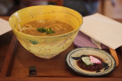 熱々のカレーうどんをお出しする段取りがだんだん板についてきました。(スタッフが)