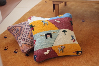 この下の方がキリム、上がキリム×ギャッベのカバー。