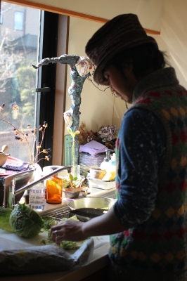 さてさて、現在、朝日を浴びてkiredo の栗田さん、仕込中です。