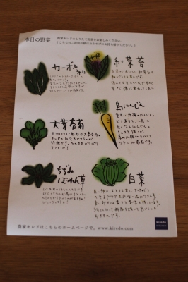 アミューズ:冬の甘野菜 紅菜苔、ちぢみほうれんそう、おたふく春菊