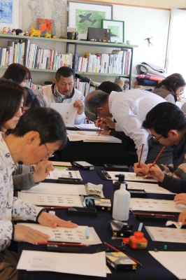 予め西尾さんがみなさんのお名前のお手本を用意されていたものを下敷きにして、
