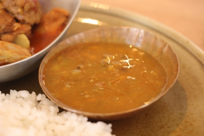 野菜とチキン+豆のセットと、キーマ+豆のセットの2セットを平らげられました。(笑)