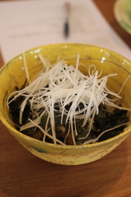 海苔と白髪ねぎをトッピング。
