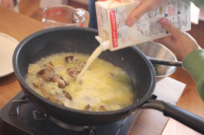 ◎アサリと菜の花の豆乳仕立てのスープ