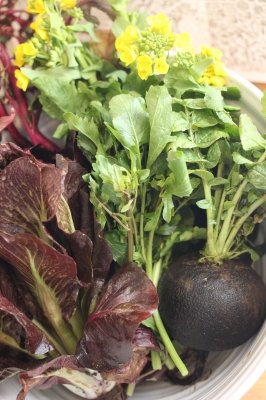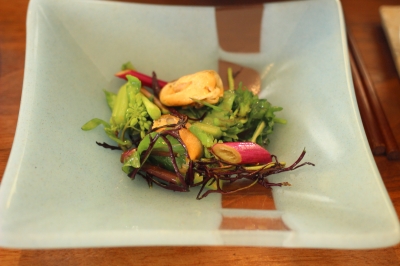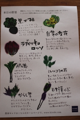 アミューズ:キレドのお花畑 ルッコラ、ステロッソ、白菜、日野菜かぶ