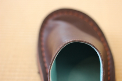 脱ぎ履きがカンタンなようにカカト部分はつぶして踏んでいます。