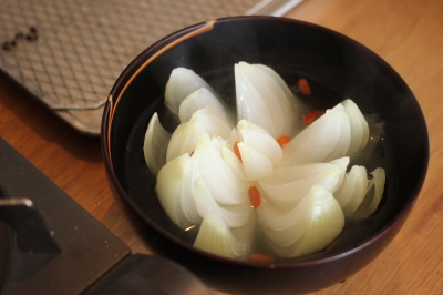 新玉ねぎを鶏ガラスープとクコの実でグツグツするだけの簡単で美味しいスープ